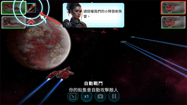 3、艦隊協同作戰時能組成特定陣型,錐形突擊陣提升30%火力輸出,環形防御陣強化護盾恢復速率。
