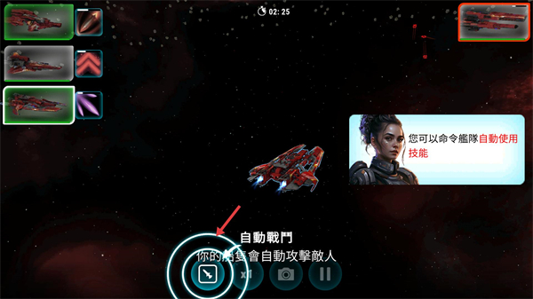 4、根據提示指令艦船自動使用技能,同時借助自動戰斗功能,讓艦船持續攻擊敵人,推進戰斗流程。