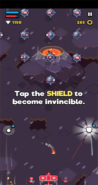 3、進入敵方集群區域,看到界面提示,點擊護盾道具,獲得無敵效果,規避敵方的集中攻擊。