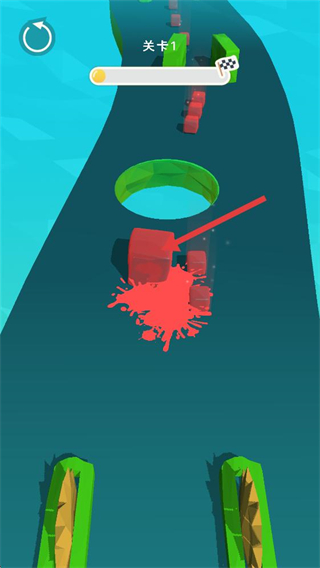 1、進入關卡1的跑酷場景,操控果凍在賽道上移動,收集小果凍并避開障礙,完成關卡進度條的填充,即可達成通關條件。