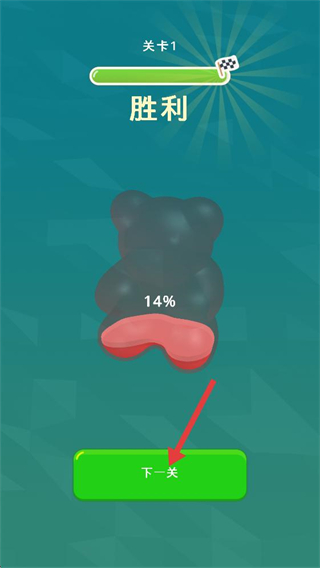 2、關卡1通關后,界面顯示勝利及進度占比,點擊下一關按鈕,即可進入關卡2的準備界面,推進游戲的關卡流程。