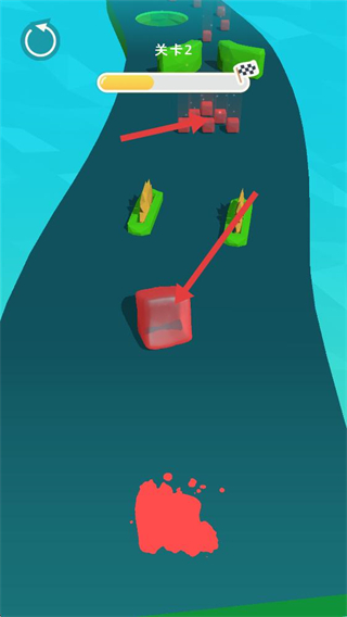 4、在關卡2的跑酷過程中界面顯示當前進度完成度,操控果凍持續移動,收集小果凍并規避障礙,逐步填充進度條,向關卡終點推進。