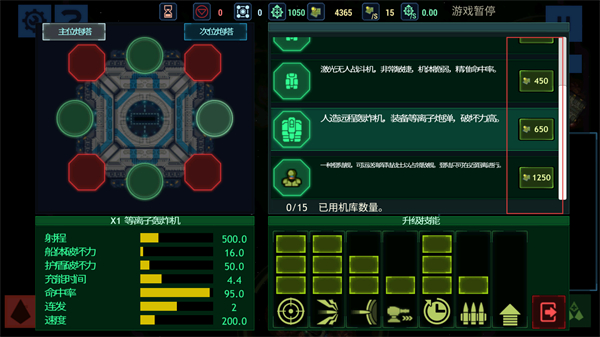3、在主防御塔界面選擇對應的防御設施,部署到基地區域,增強基地的防御陣線。