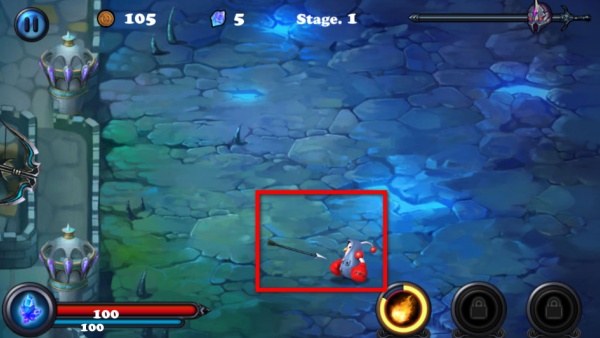 1、進入關卡后操控角色移動,場景中會出現敵人,對發射箭矢擊敗敵人,同時界面會顯示角色的生命與資源數值。