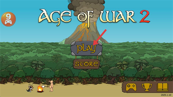1、游戲主界面提供開始游戲和商店功能,是一款橫跨人類文明史的策略塔防游戲,核心玩法是通過召喚不同時代的兵種抵御敵方進攻。
