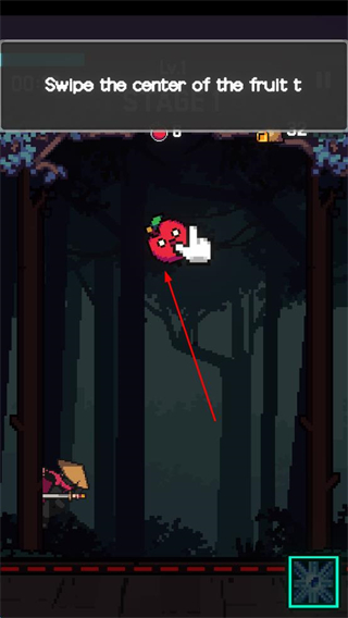 2、游戲過程遵循Swipe the center of the fruit提示,滑動屏幕對準掉落水果的中心位置切割,提升操作精準度以獲取更高分數。
