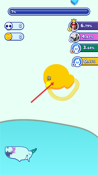 2、在場景中操控代表自身的色塊,向空白區域移動,色塊移動經過的區域會被逐步占領,提升進度。
