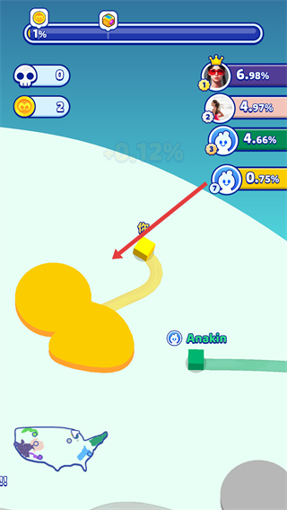 1、實時領地擴張機制要求玩家移動方塊劃出尾跡連線,閉合圖形瞬間該區域即被占領,尾跡長度與劃取面積直接關聯,但過長的尾跡也意味著更高的被切斷風險。