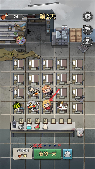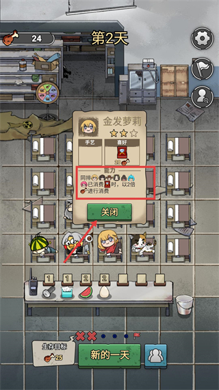 2、伙伴羈絆組合帶來策略深度。選擇不同伙伴能激活特定效果,比如防御強化或資源獲取加速。每次新的一天選擇伙伴都影響著后續生存路線的走向。