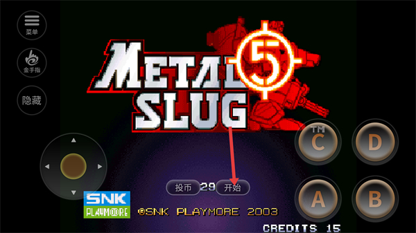 1、進入游戲主界面后,需先點擊【投幣】按鈕獲取游戲次數,再點擊【開始】按鈕啟動游戲,界面左側有菜單、金手指等輔助功能,新手可先聚焦核心啟動步驟。