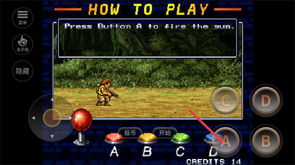 2、進入玩法說明界面,可知按【A鍵】可發射子彈,這是戰斗的基礎操作,熟悉該按鍵功能后,即可進入實際關卡開展戰斗,優先掌握攻擊的核心指令。
