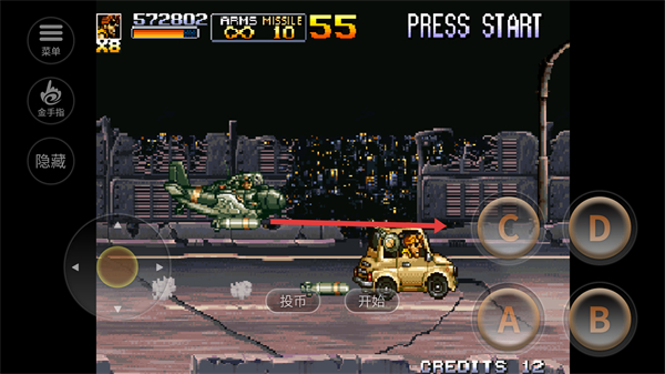 3、經典Slug坦克依舊可靠,新增的飛行器允許滯空作戰,不同載具對應獨特的攻擊模式與耐久度。