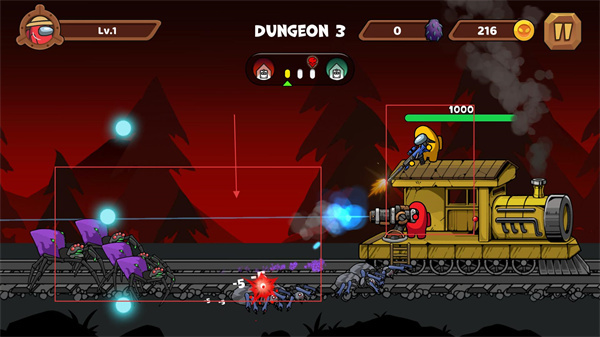 2、進入關卡后,操控武器攻擊地面集群敵人,單次攻擊對敵人造成5點傷害,同時借助隊友的輸出配合推進,留意自身與隊友的血量。