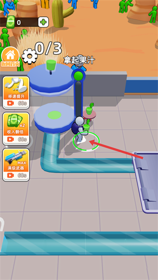 3、果汁生產完成后,需操控角色前往對應裝置拿起果汁,按箭頭指引移動至目標位置,需累計完成3次拿取任務,每次操作后確認進度更新,確保流程銜接順暢。