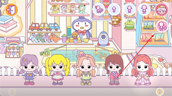 3、店鋪場景中選擇下方展示的角色形象,點擊上分的角色可將其帶入當前場景,搭配店鋪內的物品,豐富場景中的互動元素。