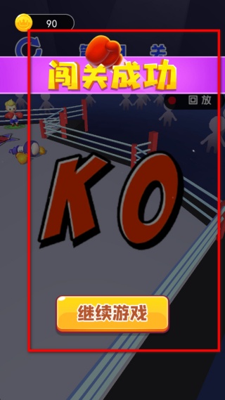 4、成功擊敗所有對手后會顯示闖關成功,此時可點擊繼續游戲進入下一關,累計的金幣可用于解鎖更多角色或提升拳頭能力。