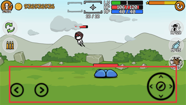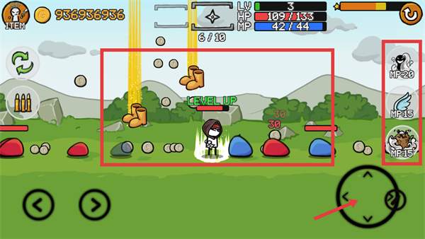 2、進入關卡戰斗界面,底部有移動按鈕與搖桿操控區域,通過移動按鈕調整角色位置,搖桿控制射擊方向,精準攻擊敵人推進進度。