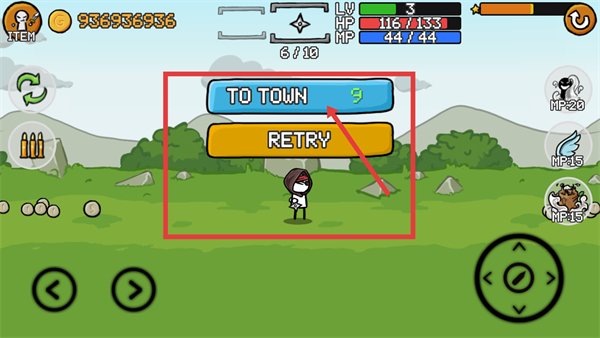 4、消滅所有敵人后本關卡即可成功通關,界面會出現TO TOWN與RETRY按鈕,點擊TO TOWN按鈕即可返回主界面,可繼續挑戰后續關卡。