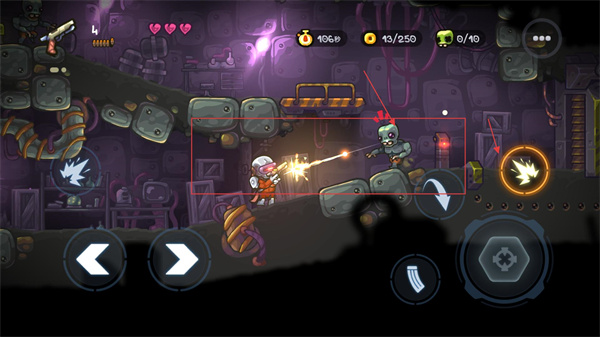 勇闖僵尸洞3在獨特的移動射擊與異常環境互動之上,噴氣背包帶來的立體機動性改變了傳統橫向卷軸游戲的戰斗平面,讓戰場在垂直方向得以延伸,游戲成功營造了一個自洽的科幻遺跡生態,從能量流動的視覺表現到受其影響的敵人行為,共同構建出沉浸式的探索氛圍。