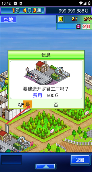 3、在彈出的設施建造確認窗口中點擊是按鈕,確認消耗對應費用來建造該設施,推進建造流程。