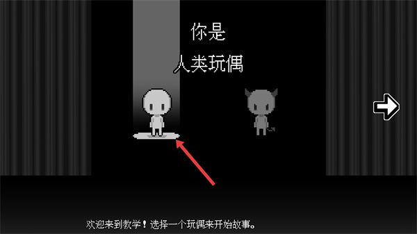 2、進入教學環節后,界面會呈現兩個玩偶選項,選擇標注【你是人類玩偶】的形象,這是開啟故事的關鍵選擇,選定后將進入與另一玩偶的互動場景。