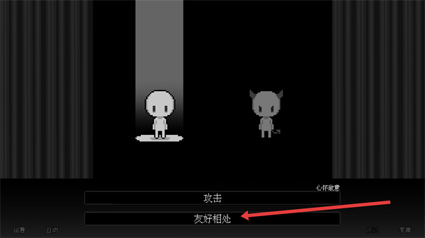 3、在互動界面出現攻擊、友好相處等選項時,選擇友好相處將觸發對應的交互劇情,不同選項會導向不同故事走向,此步驟是分支劇情的觸發點。