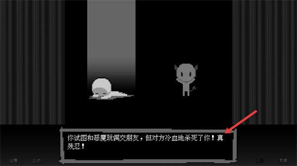 4、選擇友好相處后,會觸發角色被擊殺的結局,界面會顯示對應的劇情文本,這類結局是游戲多分支設定的一部分,可重新選擇選項體驗不同故事線。