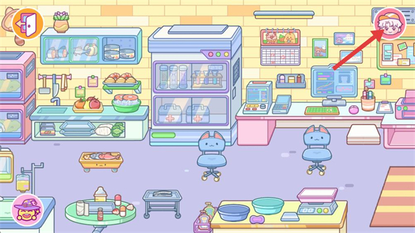 3、進入室內場景,界面右上角有角色切換按鈕,點擊可切換不同角色形象,豐富場景互動的角色選擇,適配不同玩法需求。
