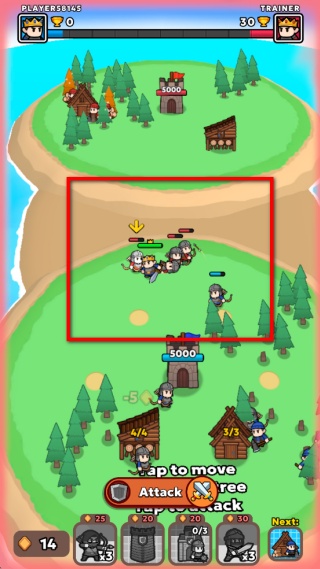 4、切換攻擊模式指揮兵種進攻敵方單位,摧毀對方的建筑和城堡,成功擊潰敵方陣營即可獲得這場對戰的勝利。
