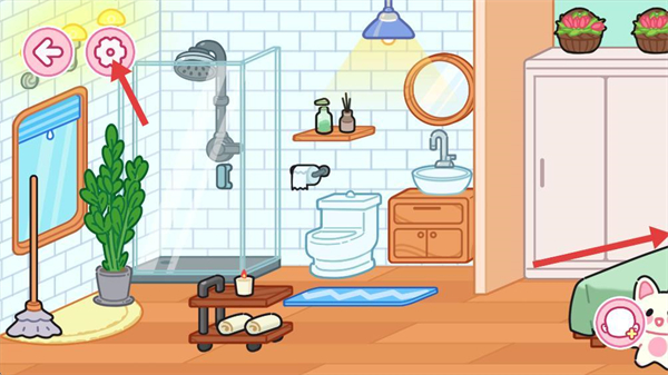 3、進入室內場景,界面左上角有裝飾切換按鈕,點擊可更換場景裝飾元素,同時場景內的物品也可觸發互動,豐富游玩體驗。