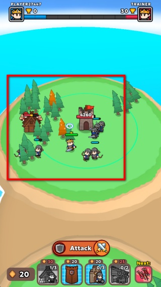 3、操控角色帶領兵種進攻敵方城堡,持續消耗城堡血量,同時清理周圍的敵方兵種,逐步壓縮敵方的活動范圍。