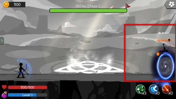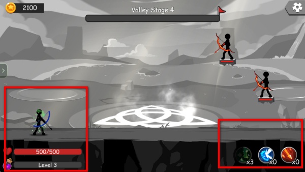 4、使用界面下方的技能道具,搭配已學的能力,持續攻擊新出現的敵方弓箭手,維持自身血量穩定,逐步通關更多階段。