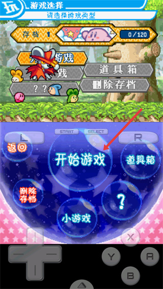 3、進入游戲選擇界面后,點擊開始游戲選項可進入主線冒險,此外還有道具箱、小游戲等功能選項,開始游戲是開啟主線劇情的核心入口。