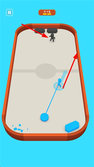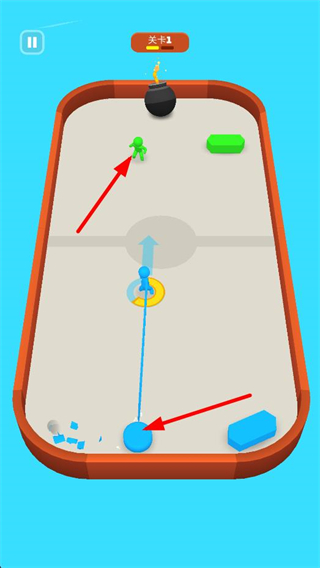 3、清理完前期目標后,場景會出現黑色小人,繼續操控藍色小人連接圓球,瞄準黑色小人進行彈射,完成對應目標。
