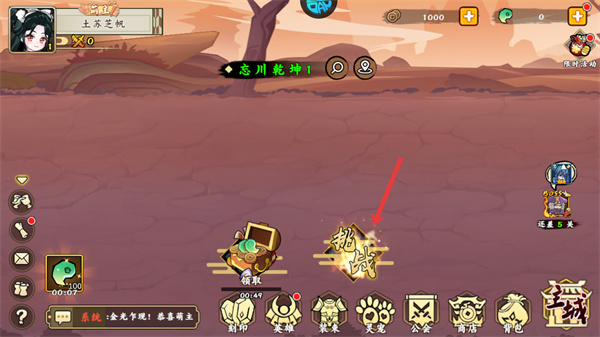1、進入界面后,可通過挑戰按鈕開啟對戰,同時利用探索功能獲取資源,注意界面左側的功能入口,能查看任務、郵件等信息,先完成基礎操作熟悉界面布局。
