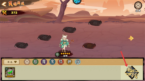 2、在戰前準備界面,先選擇出戰角色,再通過下方的屬性分類調整編隊,確認后點擊挑戰進入戰斗,合理搭配角色屬性可提升戰斗優勢。