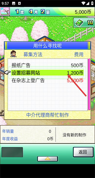 3、在招募方法界面里,挑選合適的招募方式,比如設置招聘網站,消耗對應的貨幣來發布招聘廣告。