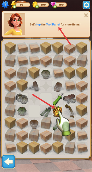 1、進入游戲場景后,查看界面中的工具提示,點擊對應的工具圖標,開啟工具相關的操作流程。