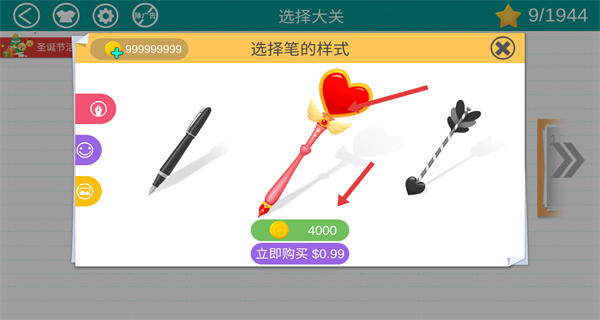 3、點擊界面中的相關按鈕,選擇心儀的筆形,點擊對應按鈕解鎖新筆形,以便在關卡中使用。