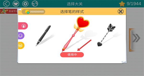 4、選擇想要使用的筆樣式,確認后將其設置為當前使用的工具,以便在關卡中使用該樣式進行操作。