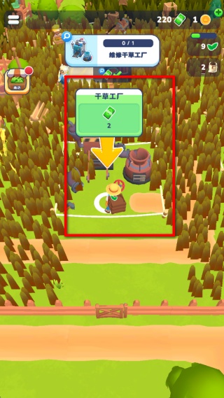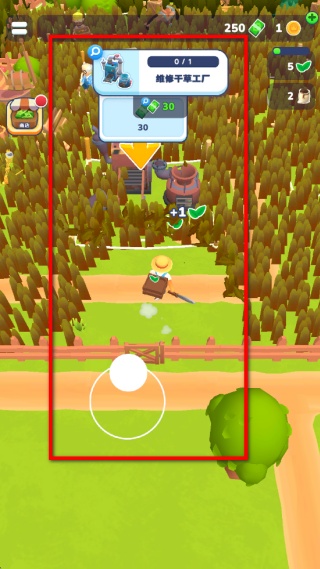 1、進入游戲后,會接到維修干草工廠的任務,消耗對應的資源就能推進任務,同時操控角色移動,收集場景里的物資,為后續操作做準備。