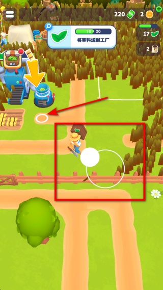 3、接到將草料送到工廠的任務后,操控角色移動到草料所在位置,獲取草料后,再朝著工廠的方向移動,把草料運送過去完成這一步任務。