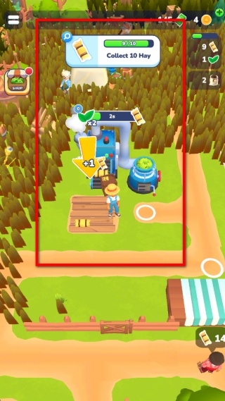 1、接到收集干草的任務后,操控角色移動到干草堆位置,收集干草來推進任務進度,每收集一份干草,進度條會對應增長,直到接近任務目標。