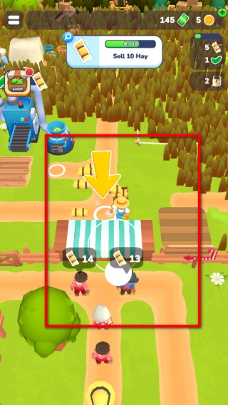 2、完成干草收集后會接到售賣干草的任務,操控角色移動到攤位區域,將干草交付給攤位前的人物,完成售賣來推進新的任務進度。