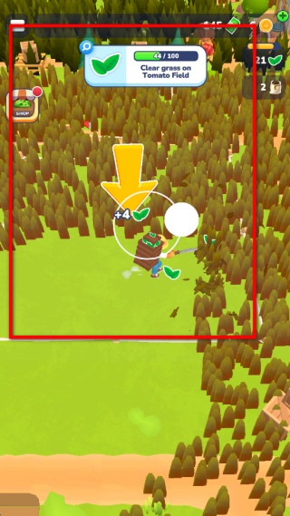 3、接下來會接到清理番茄田雜草的任務,操控角色移動到番茄田區域,清理這里的雜草,每清理一片雜草,對應的進度條就會增加。