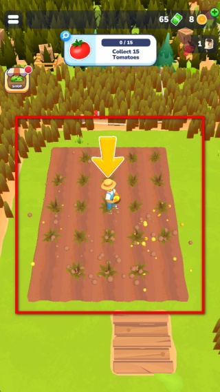 4、清理完雜草后會接到收集番茄的任務,操控角色在番茄田區域移動,收集成熟的番茄,累計收集到指定數量就能完成該任務。