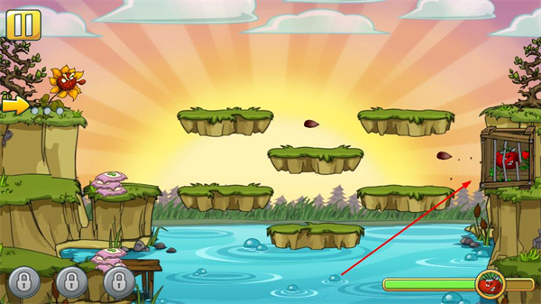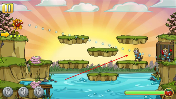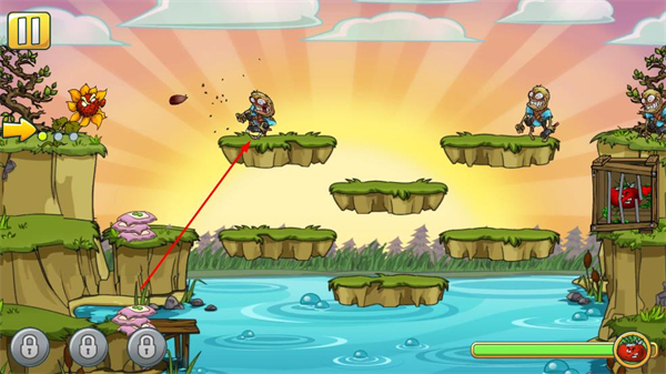 1、打開植物僵尸守衛戰游戲,進入關卡界面,觀察場景中被囚禁的番茄角色,確定需要攻擊的敵人位置。