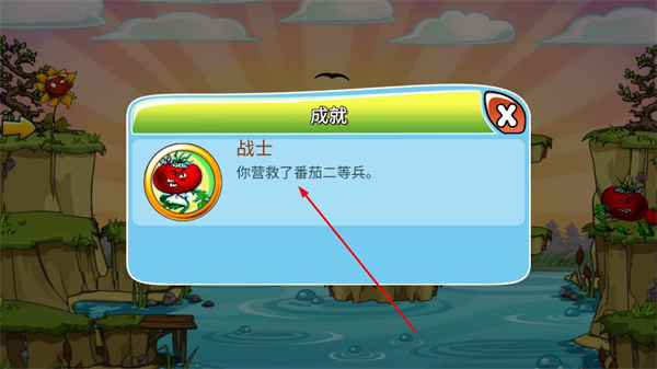 4、成功破除障礙后,解救出被囚禁的番茄角色,頁面彈出成就提示,完成該關卡的救援任務。