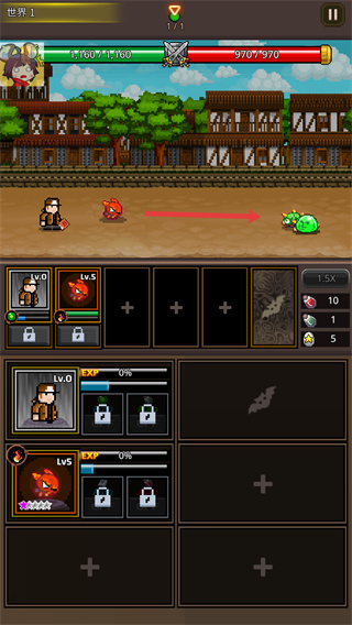 4、進入關卡戰斗界面后,可看到我方角色與隨從的狀態、敵方怪物的信息,戰斗中可利用已解鎖的角色與隨從出戰,擊敗敵人可推進關卡進度。