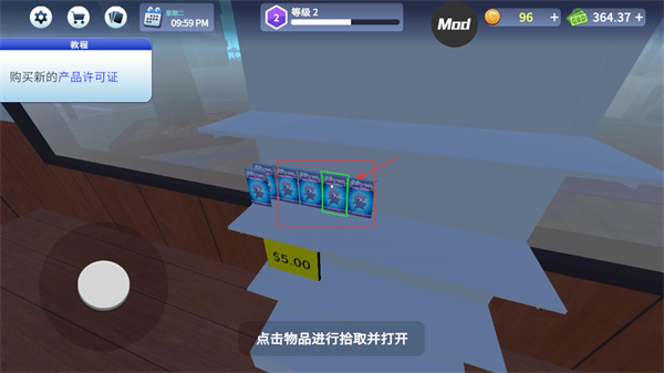 1、玩家需要在貨架上找到對應物品后點擊拾取,這是打開卡包的前置步驟,玩家可按操作可推進流程。